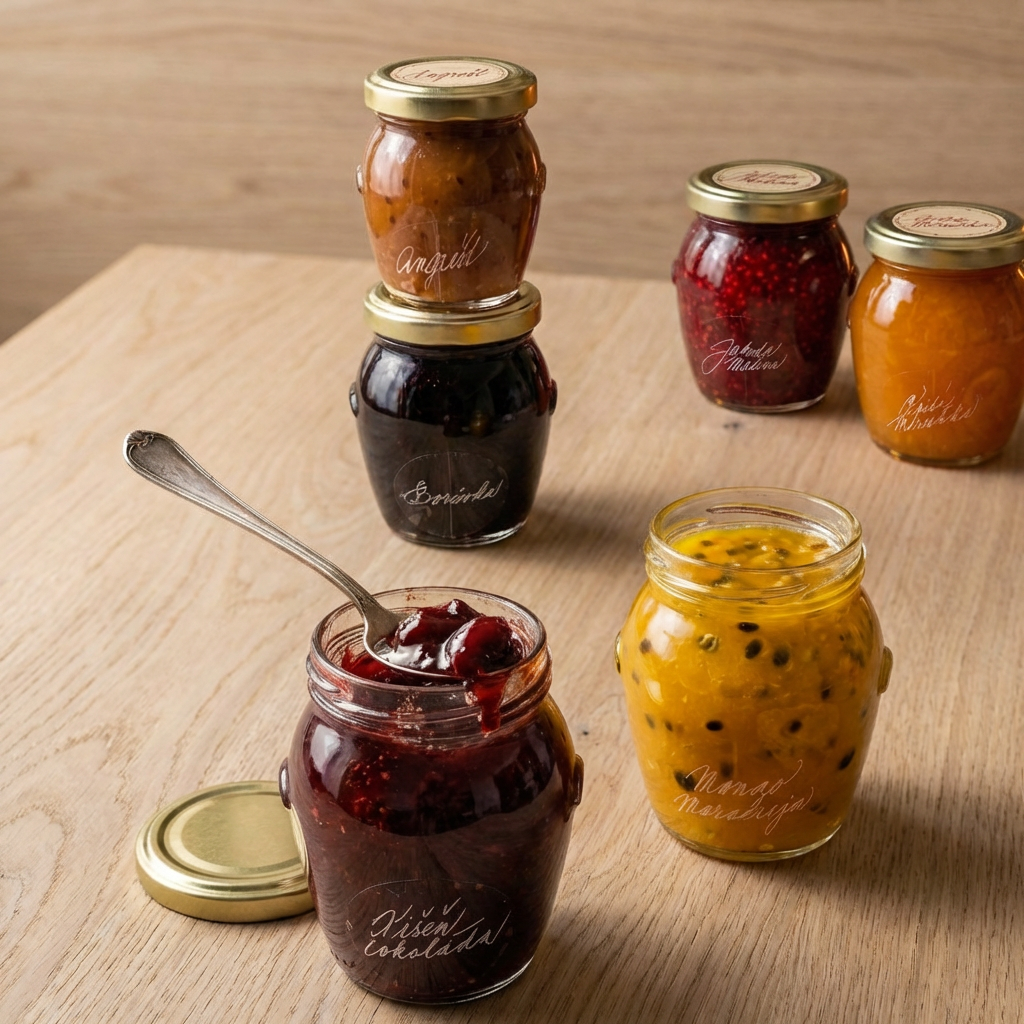 Zloženie: višňa 65%, cukor 29%, 70% čokoláda Lindt 4% (mlieko), pektín 1%, citrónová šťava 1%.